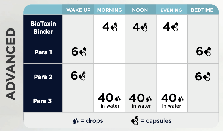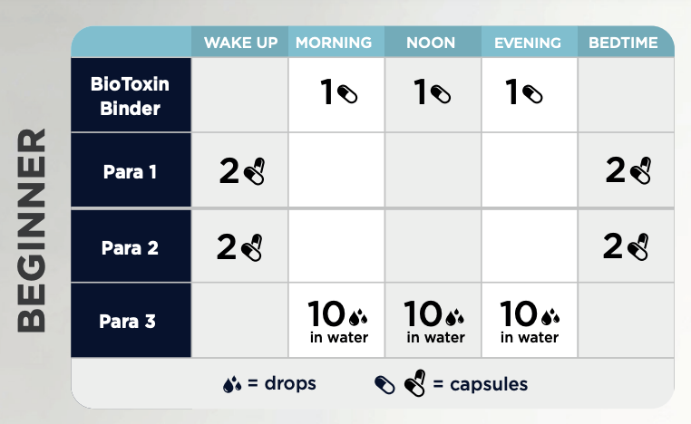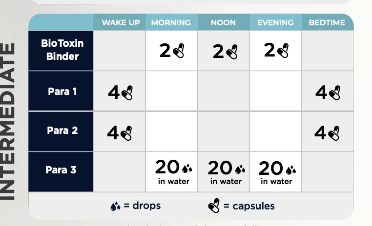 If you follow the full 3-month protocol exactly as written (below), the Para Kit will run out before you’re finished. Not by much, but by just enough to be frustrating—you’ll likely be about 15 capsules short of Para 1, Para 2, and BioToxin Binder in Month 3.